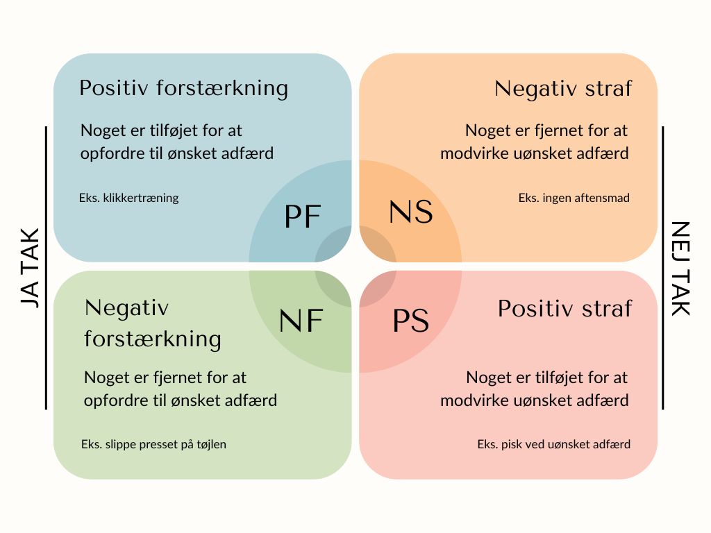 Malgré Tout har i denne artikel opridset forskellen på negativ og positiv forstærkning, og der er flere fordele ved at benytte begge træningsformer.