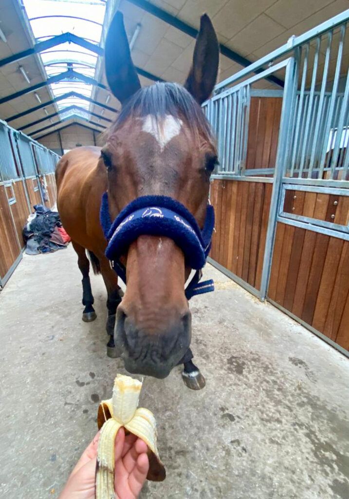 Ikke alle heste kan lide bananer, men hvis din hest tager imod en banan, er det faktisk sundt for den, men kun i små mængder. Bananer indeholder sukker, og derfor skal din hest – som med så meget andet – ikke overfodres. Bananer har et meget højt indhold af kalium, som tidligere nævnt er sundt for heste såvel som mennesker.