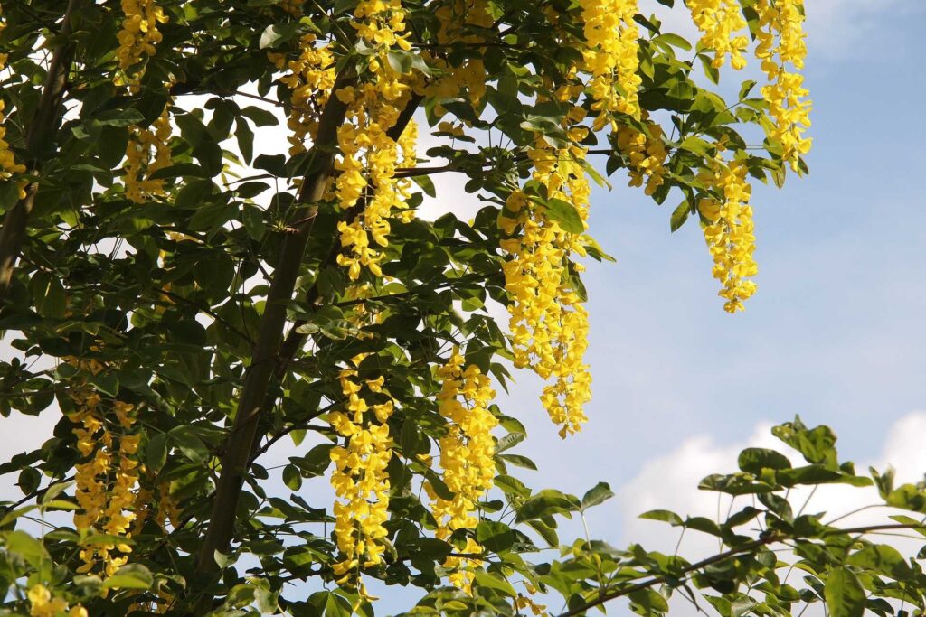 Guldregn er i løvfamilien og findes både som buske og træer. Den har gule blomster, som hænger i klaser. I planten er det især frøene i bælgen, der er farlige, da de indeholder de giftige alkaloider cystein og metylcystein. Planten kan vokse mange steder, men ses sjældent direkte på foldene.