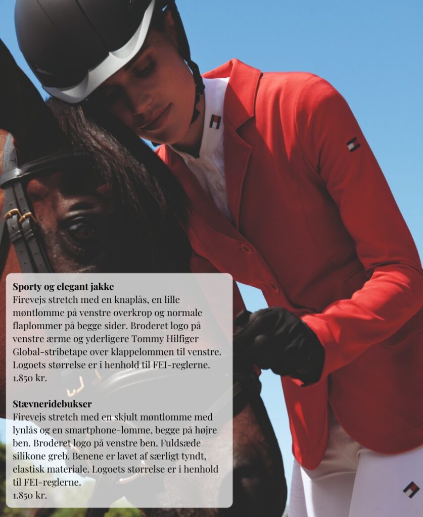 …er et af verdens mest anerkendte designerbrands inden for livsstil med fokus på at designe herre- og dametøj, sportstøj, børnetøj, denimkollektioner, undertøj samt fodtøj og accessories i højeste kvalitet. Den nye Equestrian-kollektion kan bruges overalt. Materialerne, der er nøje udvalgt og udviklet sammen med førende teknologivirksomheder, består af alt fra ridebukser, træningsjakker, stævnejakker, regnjakker, showskjorter, T-shirts og kasketter. Så uanset om du leder efter et stævneoutfit, ridetøj til daglig træning eller poloer og hættetrøjer til hyggeridning, så kan du finde inspiration i Tommy Hilfiger Equestrian.