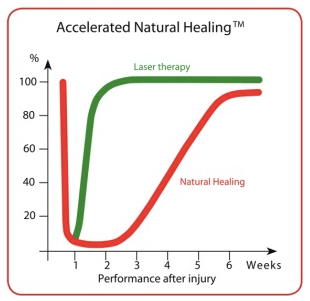 Laserbehandling øger blodgennemstrømningen til senerne og regulerer inflammationsprocessen, så hestens egen naturlige helingsproces accelereres. Hævelser mindskes, og hesten vil typisk også opleve færre smerter efter laserbehandlingen.