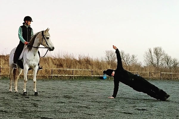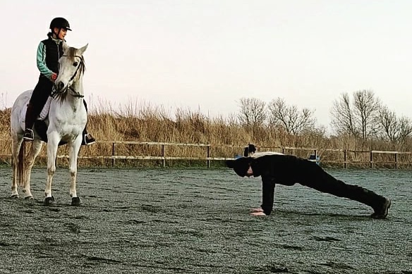 Med få og relativt simple øvelser kan du nemlig styrke din egen krop, så den også er stærk og klar til de øvelser, I skal lave, når du sidder i sadlen.