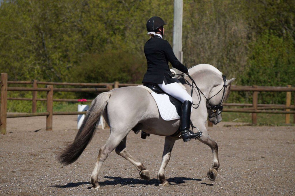 Vi rider primært dressur. I mine ponyår var jeg mest springrytter, og jeg elsker det stadig. Gråmand har utrolig meget talent for springning. Men efter en mindre seneskade på et forben opstået på fold for nogle år tilbage, har jeg været nervøs for, at der skulle ske noget med den gamle skade. Jeg får aldrig en hest af den kaliber igen som Gråmand, så jeg vil bare gerne passe på ham.