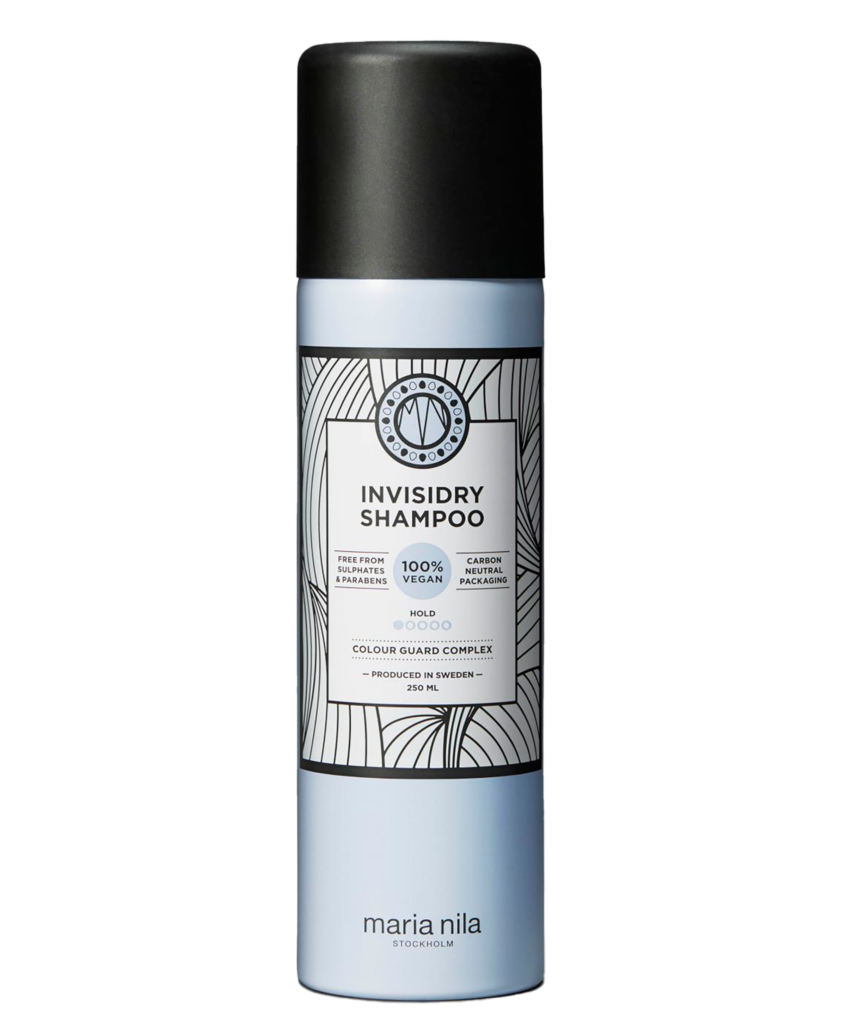 Står du med fladt og klasket ridehjelmshår efter træningen? Maria Nilas Invisidry Shampoo giver en opfriskning af håret med en let behagelig duft.