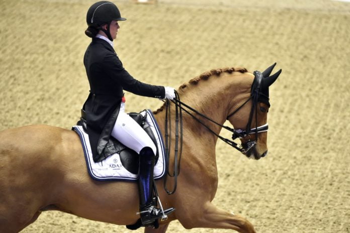 Det var nok ikke første gang, at store dele af publikum stiftede bekendtskab med den famøse strop foran på sadlen, som Cathrine undervejs rådede de to elever til at tage fat i. Cathrine bruger også selv stroppen i sin træning – et tip hun har lært af Kyra Kyrklund, forklarede hun.